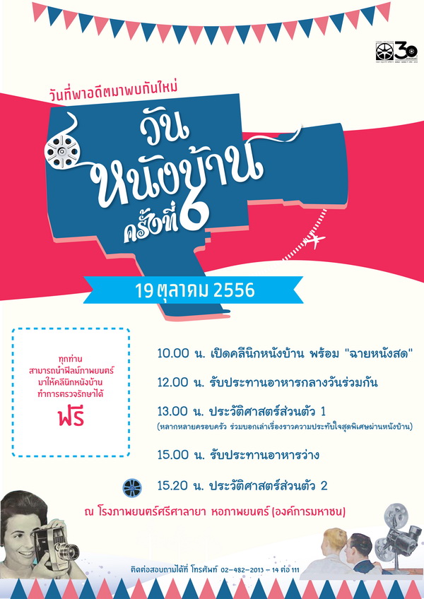 เสาร์ที่ ๑๙ ตุลาคม พบกิจกรรมวันหนังบ้าน ณ โรงภาพยนตร์ศรีศาลายา หอภาพยนตร์ (องค์การมหาชน) ตั้งแต่เวลา ๑๐.๐๐ น. เป็นต้นไป