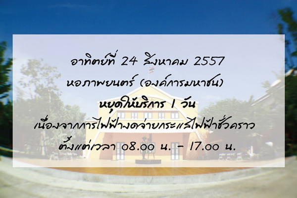 จะมีการงดจ่ายกระแสไฟฟ้าชั่วคราวในวันดังกล่าว ตั้งแต่เวลาประมาณ ๘.๐๐ น. - ๑๗.๐๐ น