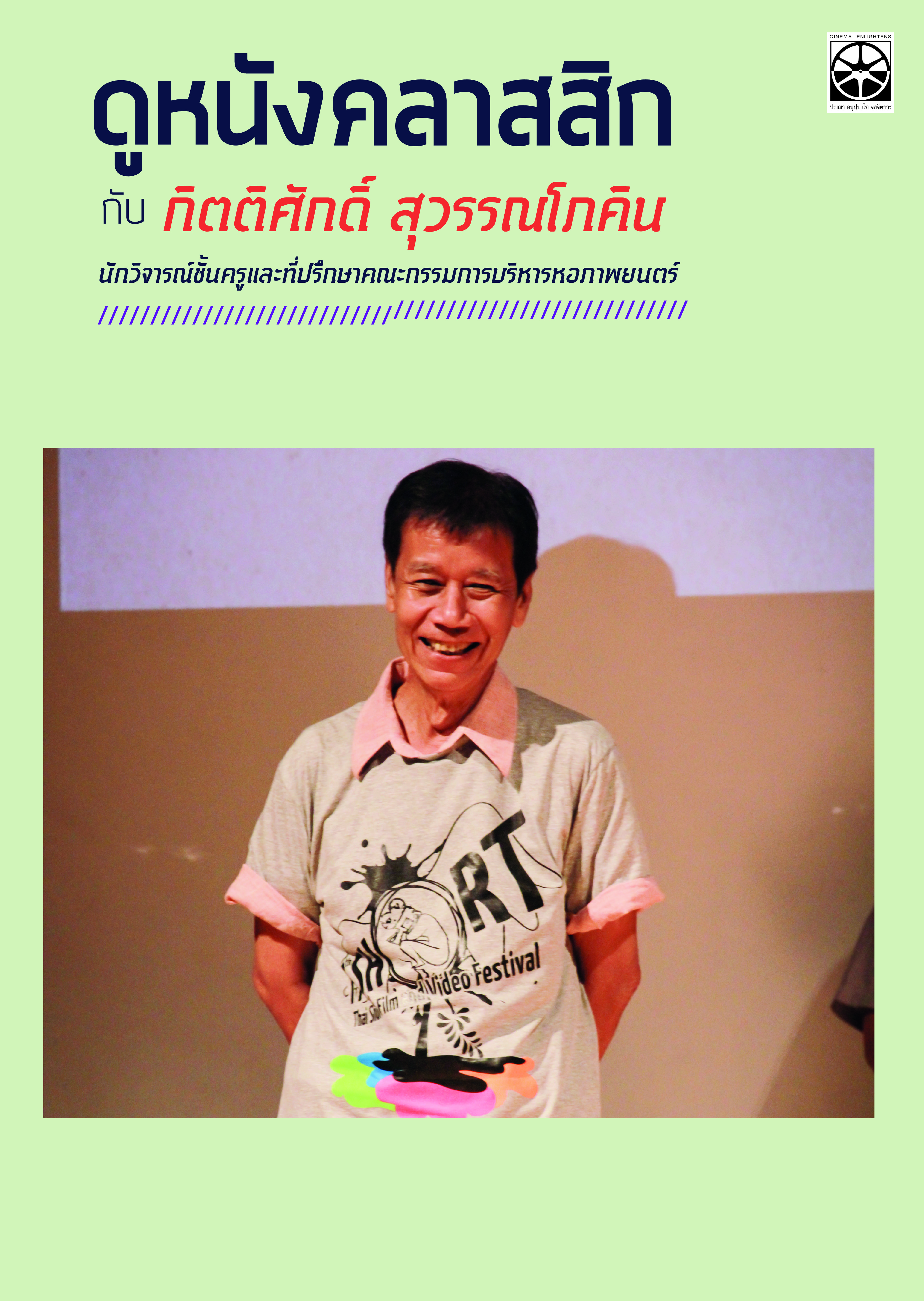 ชมภาพยนตร์คลาสสิกของโลก และวิเคราะห์วิจารณ์ประเด็นต่าง ๆ ที่มองเห็นในภาพยนตร์กับ กิตติศักดิ์ สุวรรณโภคิน นักวิจารณ์ภาพยนตร์ชั้นครู
