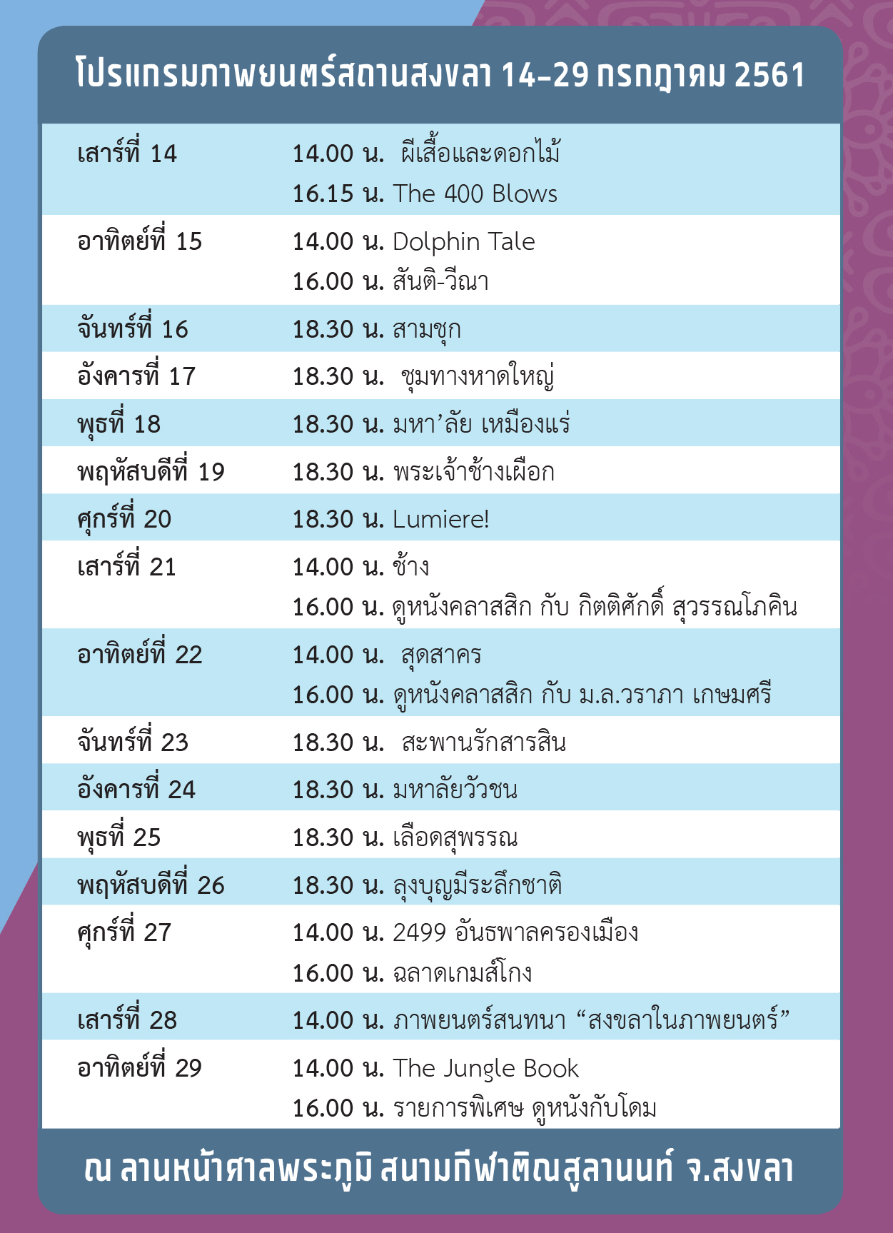 โปรแกรมภาพยนตร์สถานสงขลา