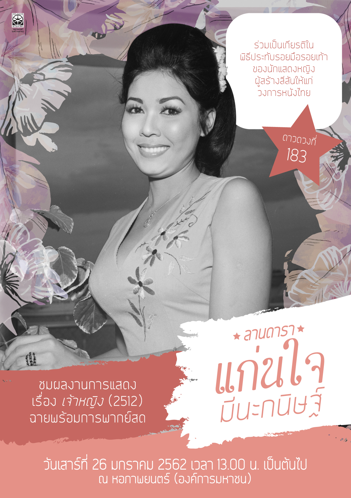 เสาร์ที่ 26 มกราคมนี้ เชิญมาพบกับ "แก่นใจ มีนะกนิษฐ์" ณ ลานดารา หอภาพยนตร์ (องค์การมหาชน)